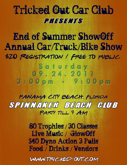 TOCC is always tweaking our shows, so one thing is certain... The 5th Annual End of Summer ShowOff by Tricked Out Car Club will be even bigger & better for 2012.